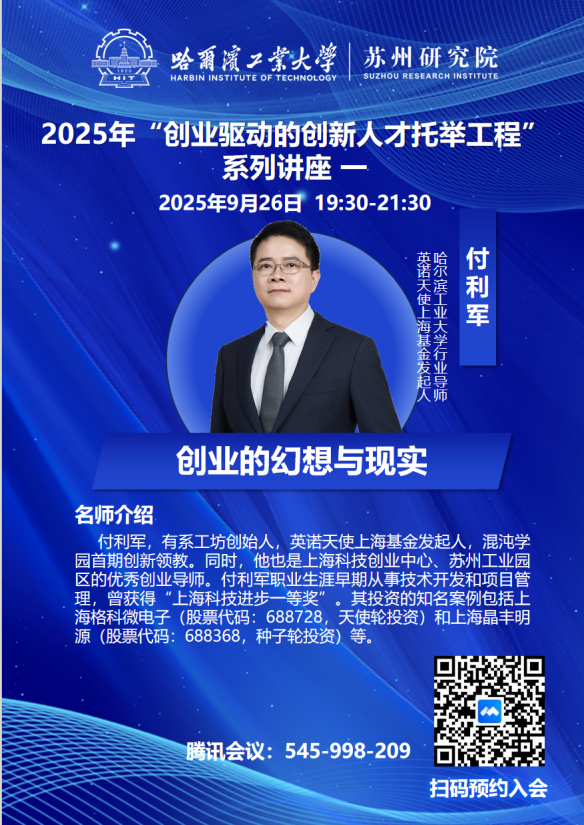 9月26日,哈工大苏州研究院启动2025年“创业驱动的创新人才托举工程”系列讲座。