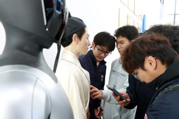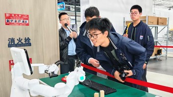 在苏州市具身智能机器人综合创新中心,同学们与智能机器人进行交流互动,感受人工智能的神奇与魅力。