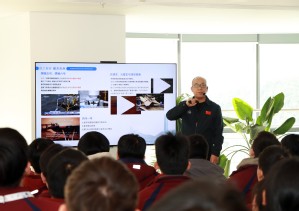 在研究院报告厅,同学们认真聆听《中国航天第一校-哈尔滨工业大学》主题报告,深入了解哈工大发展历程、科研实力、人才培养等方面内容。