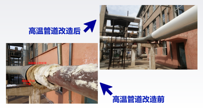 公司方案应用于某大型石化企业的高温液体和气体输送管道。该管道内壁温度约450℃。实测数据显示: