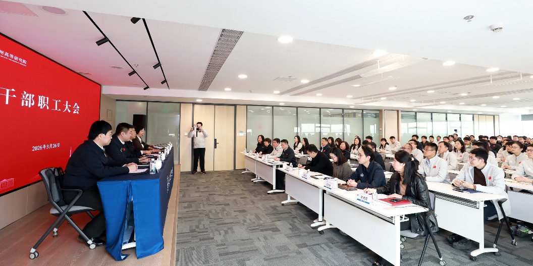 苏州市太湖新城吴中党工委委员、管委会副主任林毅君,学校校务委员会副主任、研究院顾问姚利民和研究院领导班子成员,各科研团队、各部门工作人员代表参加会议。