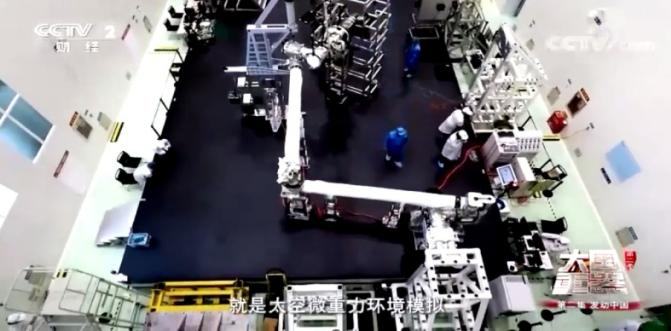 央视大国重器报道-大型空间机械臂气浮式零重力装配试验系统