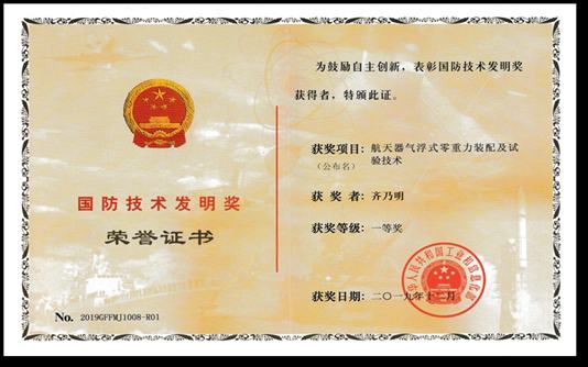 由多自由度气悬式航天器地面模拟器技术推广,国际上首次研制成功十米跨度、七自由度大型空间机械臂气浮式零重力装配与试验一体化系统。实现机械臂零重力装调和试验一体化,提高了试验精度和效率,保证了装配和试验状态的一致性、试验结果的高可信度,完成空间机械臂低应力装配和展开、爬行、转位、抓捕、对接等关键试验任务,综合性能指标、总体规模及气浮零重力模拟精度处于国际先进水平,为我国空间机械臂研发提供了重要条件保障和技术支撑。该项目被央视《大国重器》栏目报道,基于该项目的支持获2020年国家技术发明二等奖、2019年国防技术发明一等奖。