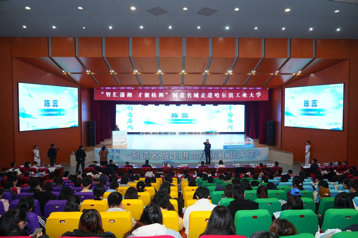 来校期间,“智汇潇湘 才聚株洲”株洲市2026届校园招聘宣讲会在校举办。曹慧泉出席活动。陈蕊出席活动并致辞。杨英杰与我校就业工作负责人共同为哈工大政务实习实践基地授牌。活动由刘亚亮主持。我校能源科学与工程学院校友、中国航发湖南动力机械研究所高级主任设计师、空气系统及传热室副主任苏正刚作株洲城市推介。中车株洲电力机车研究所有限公司党委书记、董事长李东林,株洲菲斯罗克光电科技股份有限公司董事长李慧鹏作重点企业宣讲。株洲市委、重点企业相关负责人与学子们交流互动,详细解答学子们的提问。
