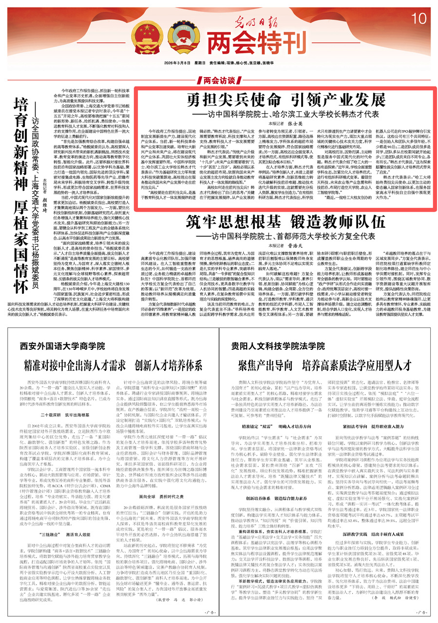 “高校要走在前列当尖兵,是基于教育科技人才一体发展规律的逻辑必然。”韩杰才代表指出,“产业发展需要教育积淀、科技支撑和人才支持,教育科技人才一体发展需要产业发展的引领。”