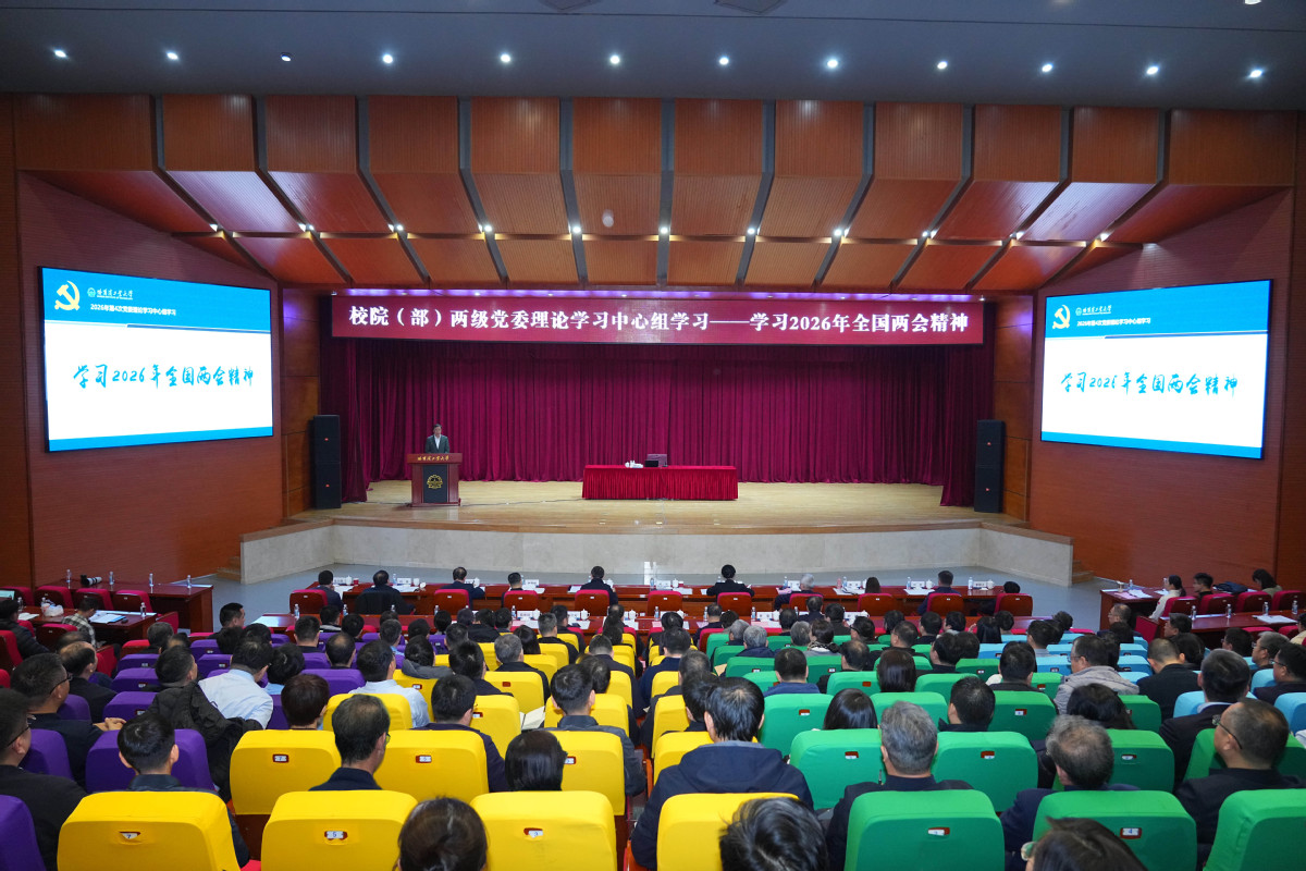 哈工大全媒体(商艳凯/文 辛然 各单位/图) 3月13日,学校举行校院(部)两级党委理论学习中心组集体学习,专题传达学习习近平总书记在2026年全国两会期间的重要讲话精神和2026年全国两会精神。校党委书记陈杰主持学习并就抓好学习贯彻落实进行部署。全国人大代表、校长韩杰才作专题辅导报告。全国政协委员、副校长范峰,全国政协委员、体育部研究员张虹分享参会感受。全国政协委员、校长助理吴立刚专题介绍国家和学校“十五五”规划纲要情况。