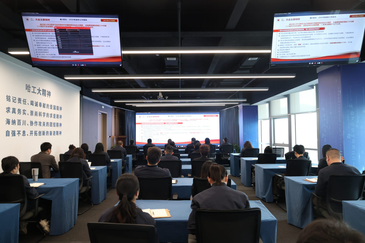 韩杰才表示,2026年全国两会是在新的起点上共商“十五五”发展大计、共谋中国式现代化建设新篇的一次重要会议。习近平总书记在两会期间发表的重要讲话,就科技创新、健康中国、国防和军队建设等党和国家重点工作作出新部署、提出新要求。李强总理作的政府工作报告和大会批准的“十五五”规划纲要等成果,为我们立足党和国家事业发展全局,全力以赴冲击世界一流大学前列提供了战略指引、提出了使命要求。全校上下要聚焦以习近平同志为核心的党中央作出的战略部署,紧盯国家最紧迫的战略需求与未来科技前沿,以超常规思维布局探索一体推进教育科技人才发展新机制,进一步释放卓越发展治理潜能、推动尖峰学科加速崛起、探索颠覆创新培养范式、提振哈工大“八百壮士”尖兵动能、实现原创贡献重大突破、建强国际合作赋能体系、加速校地协同能级提升,奋力实现“十五五”卓越开局,为以中国式现代化全面推进强国建设、民族复兴伟业凝聚团结奋进的磅礴力量。