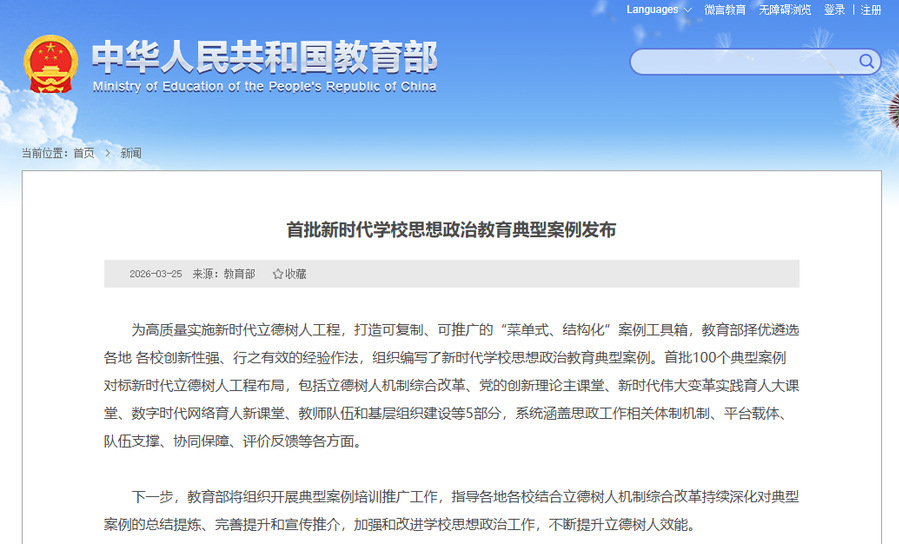 哈工大全媒体(王晨阳/文)近日,教育部发布首批新时代学校思想政治教育典型案例,我校“创新思政教育资源供给模式 以学生为中心推动思政教育智能体功能形态持续升级”“坚持习近平总书记贺信精神引领 以卓越党建引领事业卓越发展”两项案例成功入选。