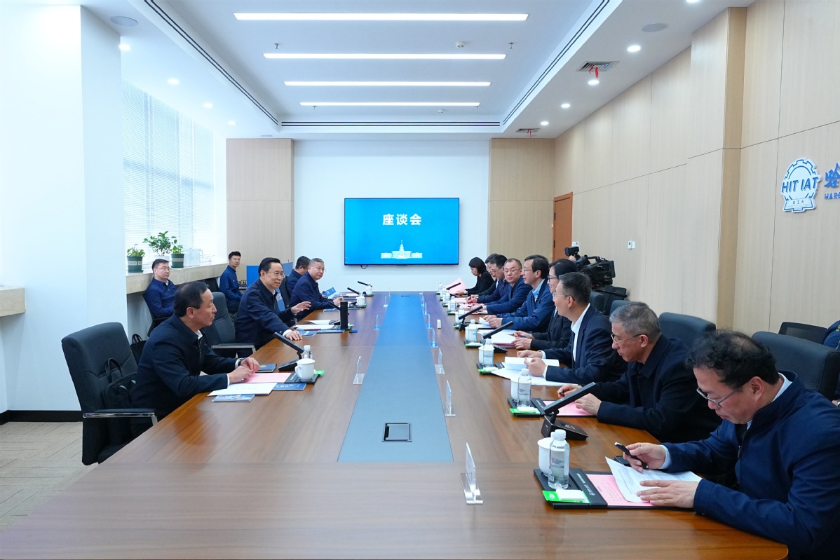 调研期间,蓝绍敏一行详细了解了哈工大近年来的发展成就、服务龙江发展成效,以及先研院的运营模式和成果转化推进等情况,并与入驻先研院创新项目、孵化企业的相关负责人和科研人员进行交流,询问企业技术研发、产品应用、项目落地、生产运营和未来规划等情况。座谈会上,蓝绍敏认真听取我校及先研院发展情况汇报。他指出,建设哈工大先研院,是省委省政府和哈工大深入贯彻落实习近平总书记视察黑龙江期间重要讲话重要指示精神、致哈工大建校100周年重要贺信精神和关于因地制宜发展新质生产力重要论述精神的重要举措,对引领和推进龙江科技成果转化具有重大意义。希望哈工大先研院紧密围绕服务地方经济发展,聚集科技成果转化核心功能,继续在重点领域“聚焦”上做文章,更好发挥产业带动作用;加强与省及哈尔滨市人才政策对接,在育才、引才、留才、用才上探索更多新做法,更好发挥人才集聚作用;加强改革创新,进一步推进、深化、拓展、升华自身优势与功能,更好发挥创新示范作用,助力龙江提升科技创新链,打造科技创新生态圈,发展新质生产力,为龙江“十五五”期间重振雄风、再创佳绩作出更多贡献。
